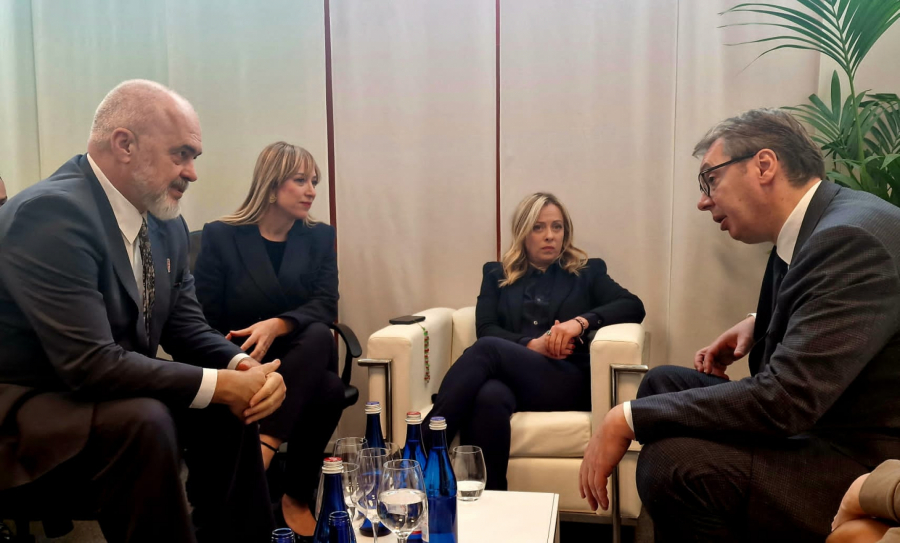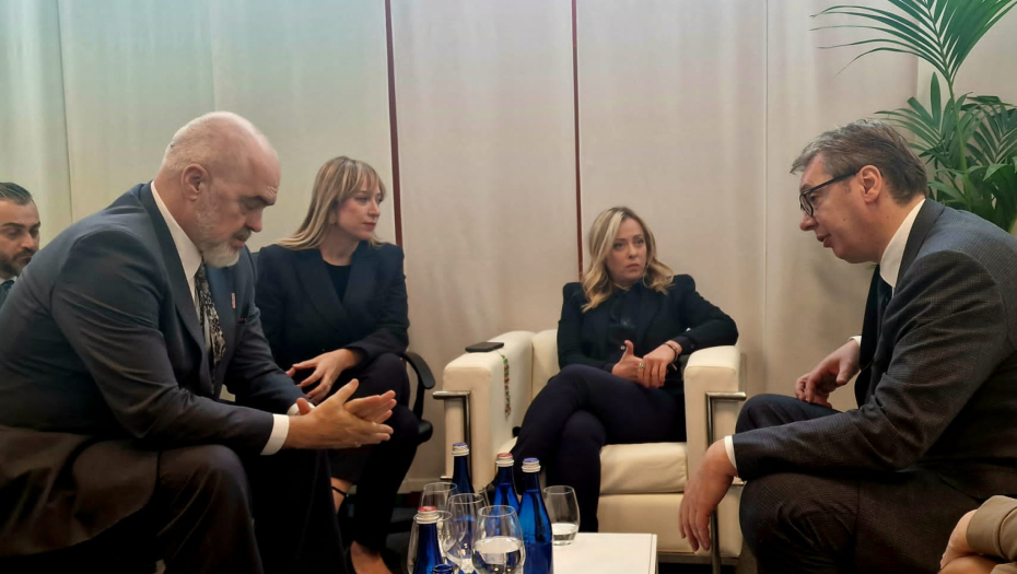 Danas na sastanaku kojem je bio prisutan Edi Rama a glavni nosio razgovora naš Predsednik Srbije Aleksandar Vučić sastao se sa premijerkom Italije Đorđom Meloni. razgovor je tekao u prijatnoj i prijateljskoj atmosferi .