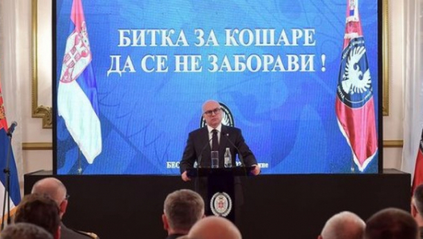 – Postoje granice koje su večne, postoje granice koje traju duže od svih država, a te naše granice su omeđene tamo gde je prolivena naša krv, gde su kosti naših junaka. Vi možete da donesete kako god hoćete odluku, ne možete iz duše, iz srca, da uzmete ono što narod oseća. Slava našim najmilijim i besmrtnim vitezovima sa Košara i sa celog Kosova i Metohije, slava vama najboljim sinovima Srbije, neka živi, jača, napreduje i snaži naša vojska, Vojska Srbije, i neka je večna naša jedina otadžbina, slobodna i nezavisna Srbija – zaključio je ministar odbrane.