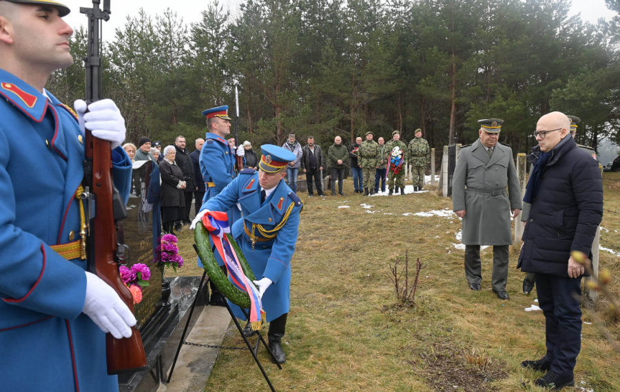 Ministar Vučević venac je položio u pratnji brigadnog generala Gorana Momčilovića i brigadnog generala Siniše Staševića, a vence su položili i članovi porodice, pripadnici Vojske Srbije i predstavnici lokalne samouprave.