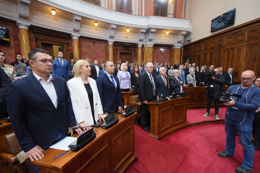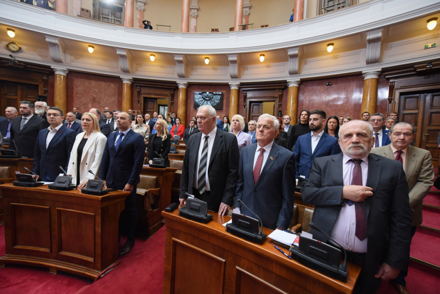 Poslanike je dočekala garda ispred skupštine, crveni tepih, a budući da je prva sednica redovnog zasedanja, sednica je počela intoniranjem himne.