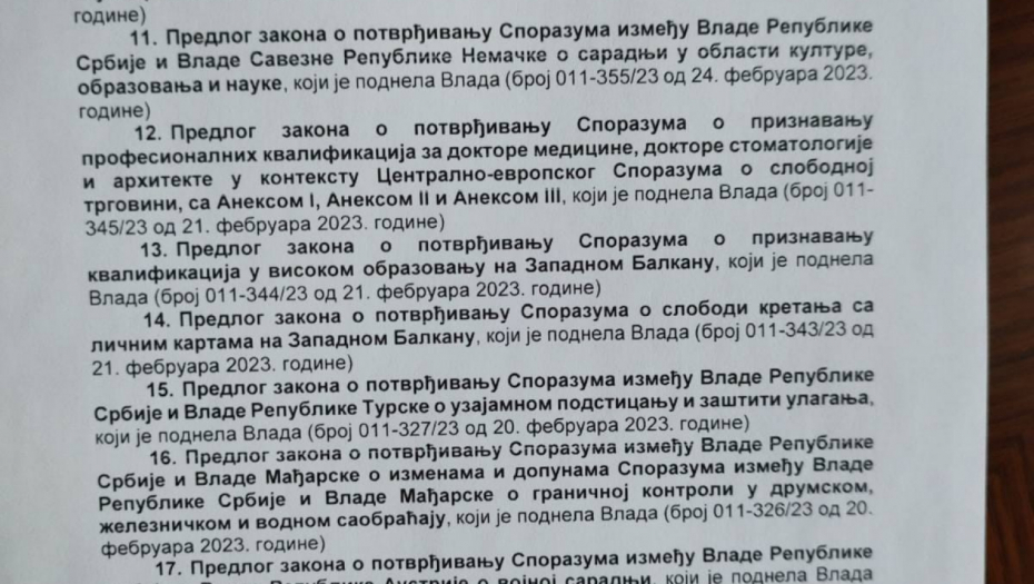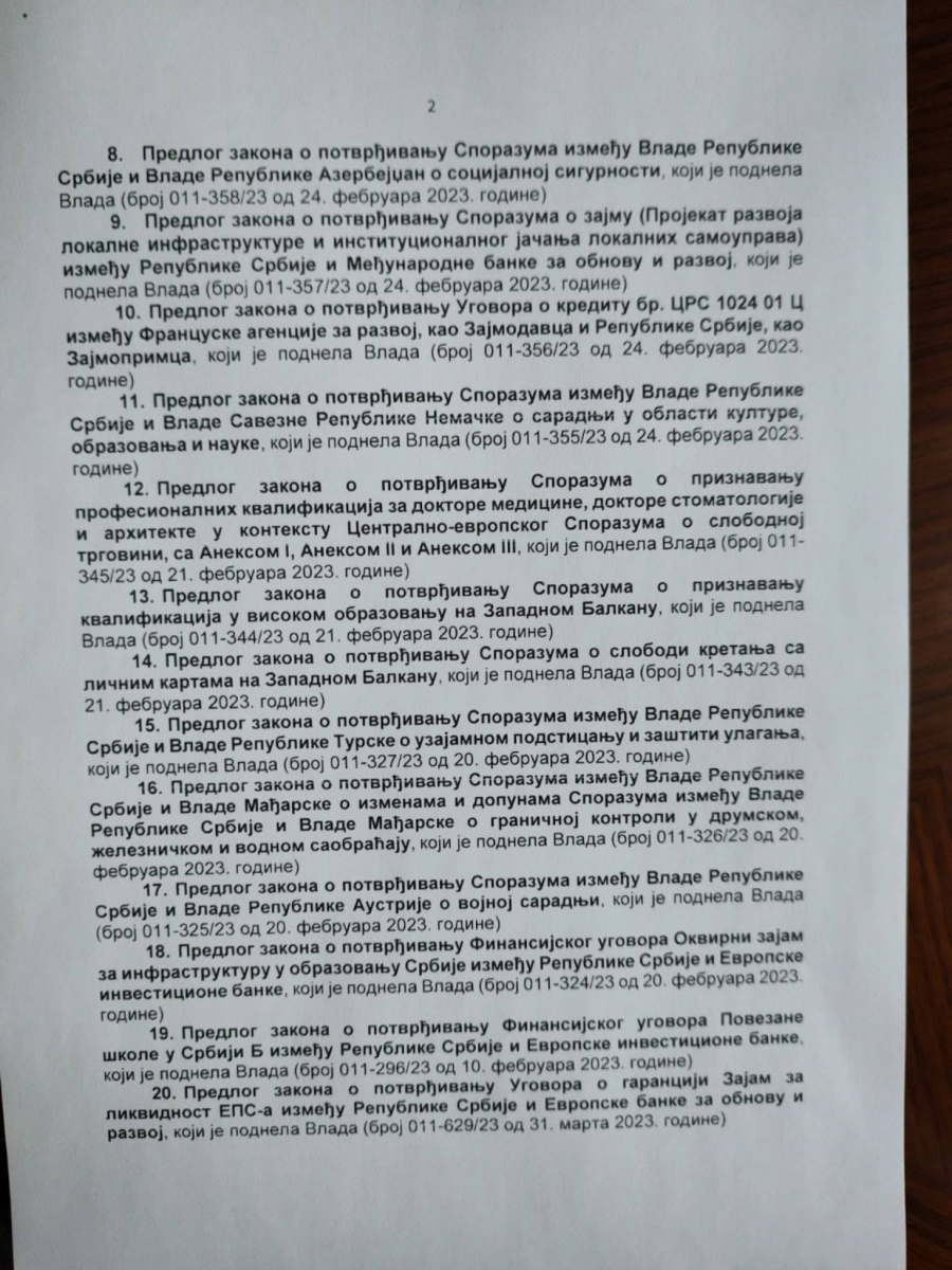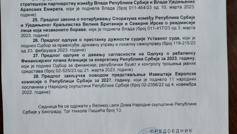 U nastavku možete pogledati predloženi dnevni red najavljene sednice.