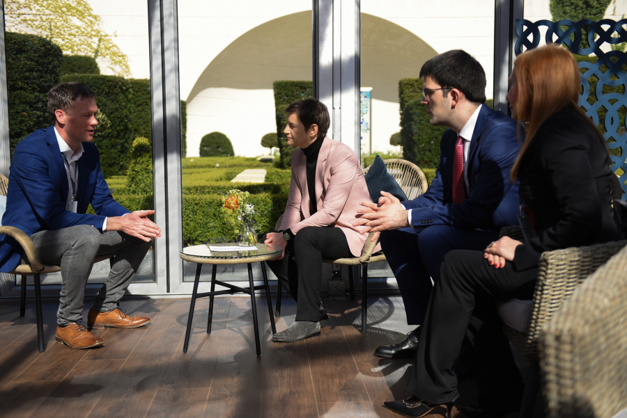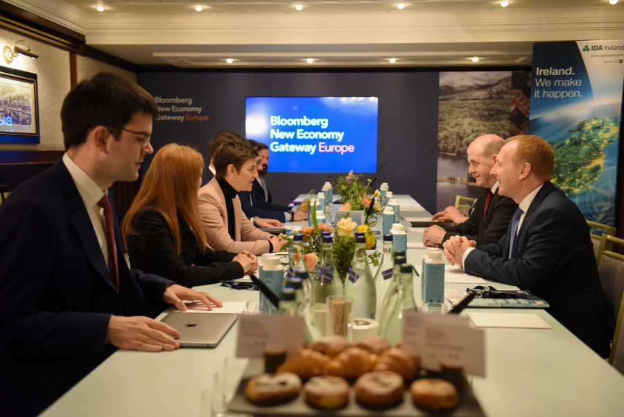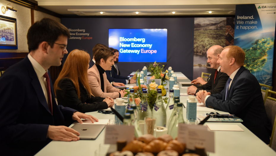 Premijerka Srbije Ana Brnabić sastala se na marginama Blumberg konferencije u Dablinu sa irskim ministrom preduzetništva, trgovine i zapošljavanja Sajmonom Kovenijem, direktorom Agencije za industrijski razvoj Mihaelom Lohanom, predstavnikom Blumberga Skotom Havensom i generalnim menadžerom "Jaguar land Rovera" Džonom Kormikanom.
