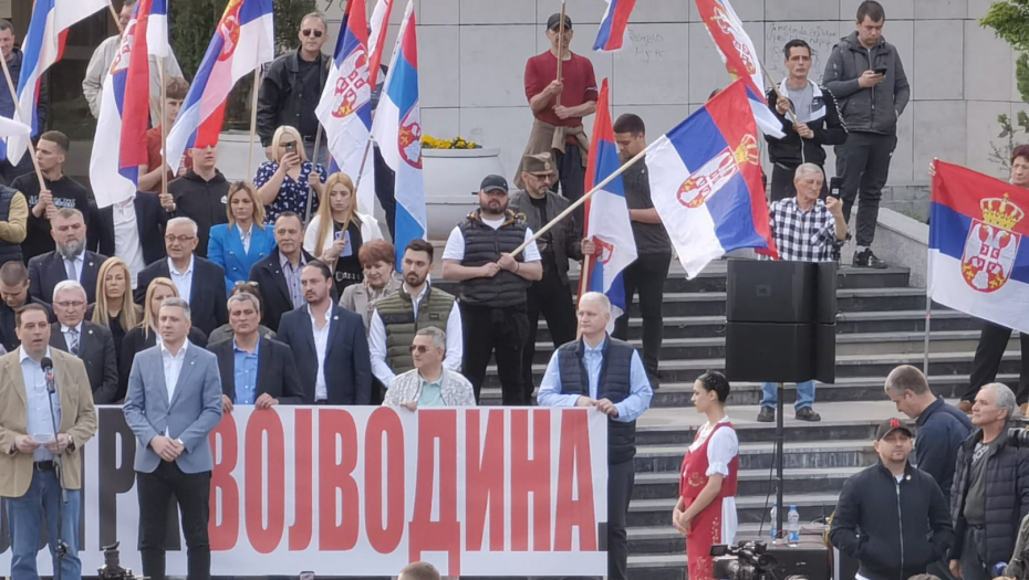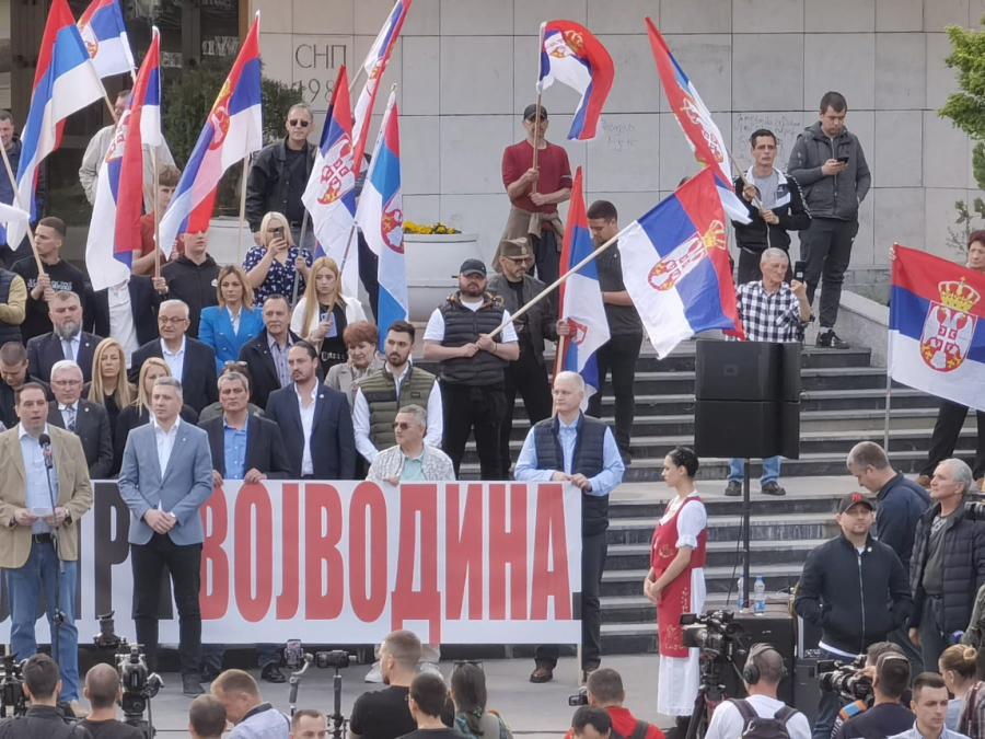 SVI ZAJEDNO PROTIV VUČIĆA I SRBIJE Čovek koji je krečio i skidao srpske zastave uslikan na mitingu u Novom Sadu (FOTO)