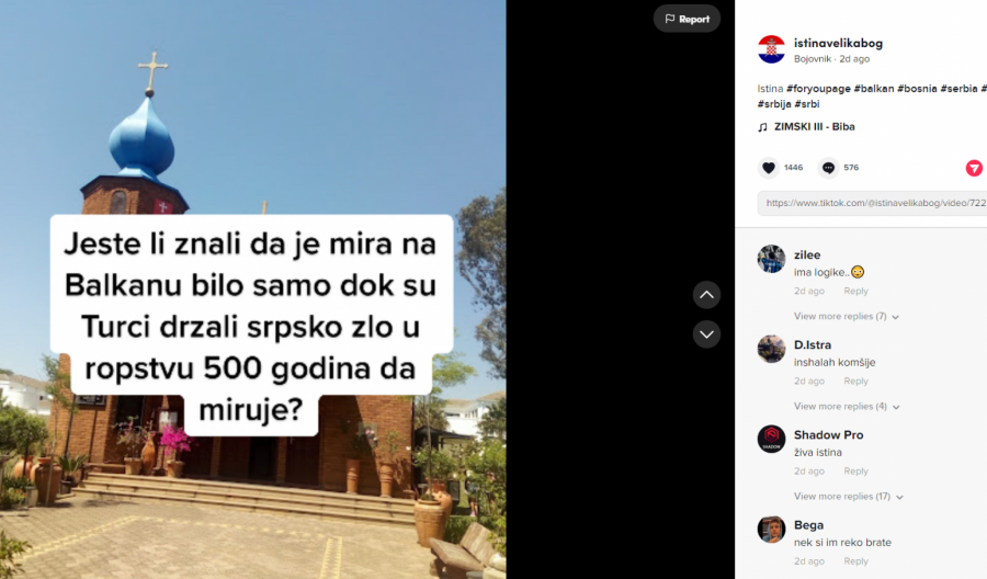 "Jeste li znali da je mira na Balkanu bilo samo dok su Turci držali srpsko zlo u ropstvu 500 godina da miruje?"