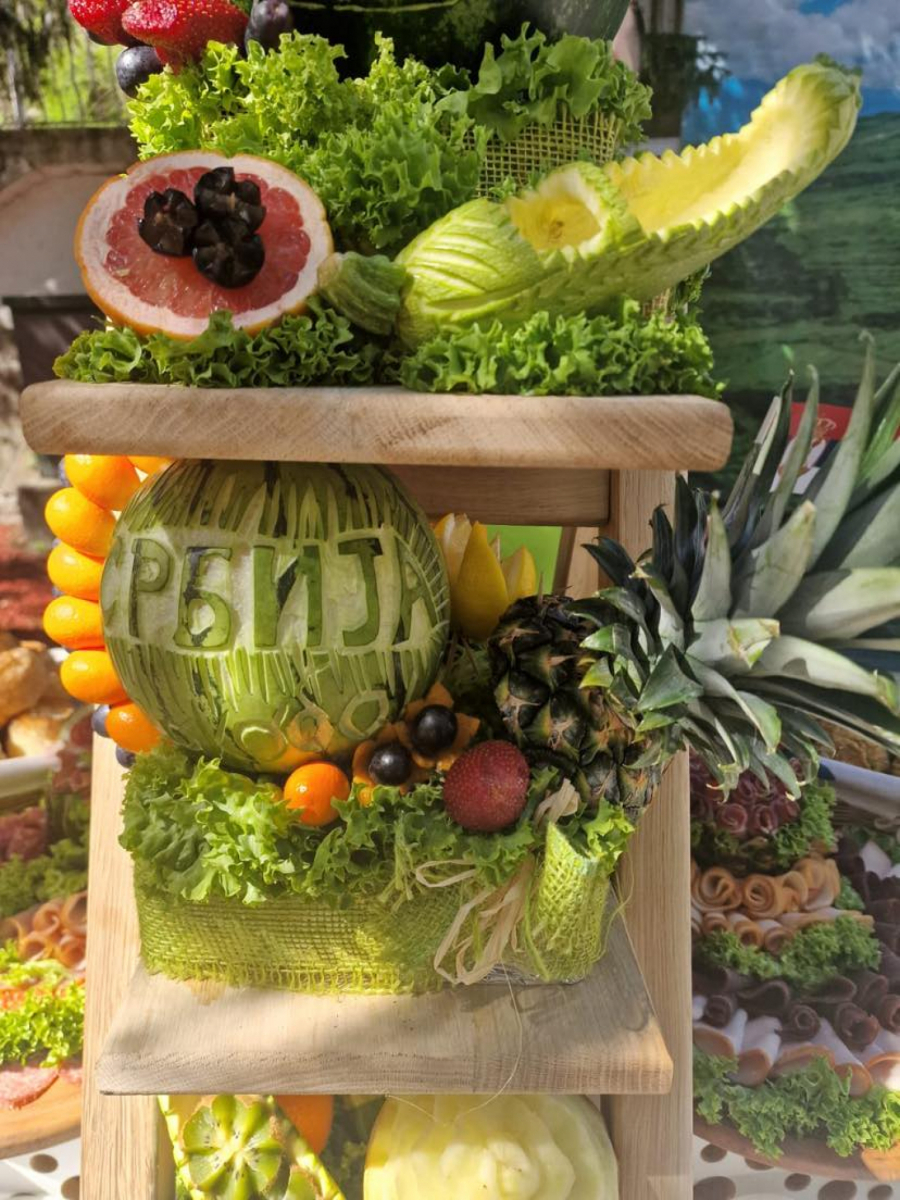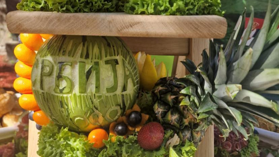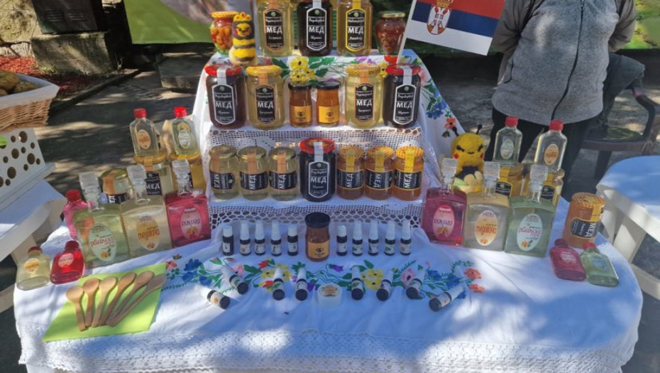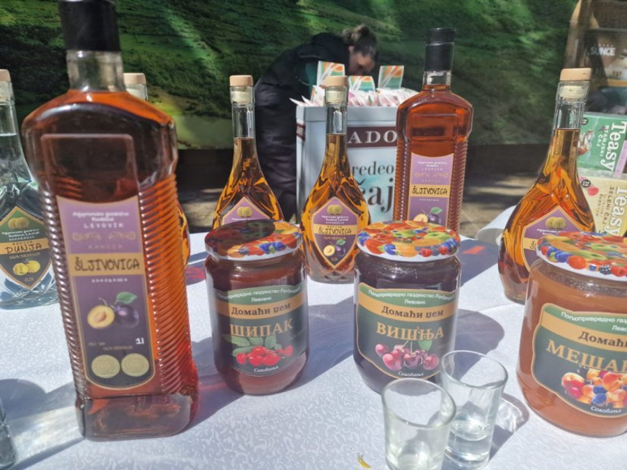 Predsednik se prvo pozdravio sa vlasnicima plantaže, a zatim i štandove sa domaćim proizvodima poljoprivrednih gazdinstva, gde mu je priređen raskošan doček sa slanim i slatkim stolom, a vredne domaćice je upitao kako im ide posao i kako su se organizovale.