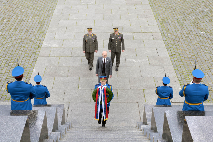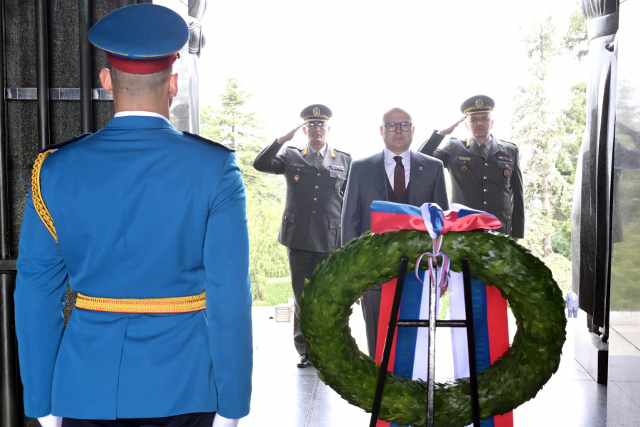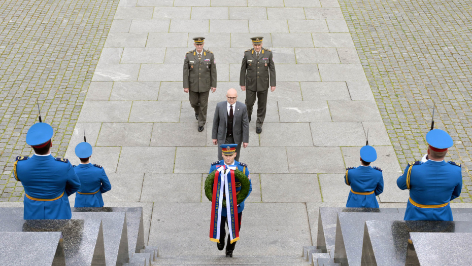 Ministar Vučević venac je položio u pratnji šefa Kabineta ministra odbrane brigadnog generala Gorana Momčilovića i načelnika Uprave za telekomunikacije i informatiku Generalštaba brigadnog generala Mileta Vitezovića.