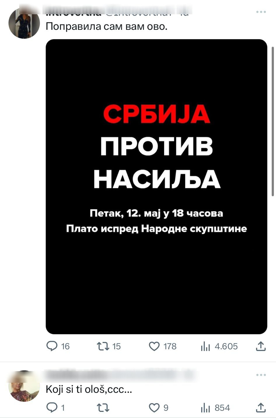 Nasilje i pretnje nisu nikada prihvatljive i trebamo se držati mira i dijaloga kako bismo rešili probleme u našem društvu.