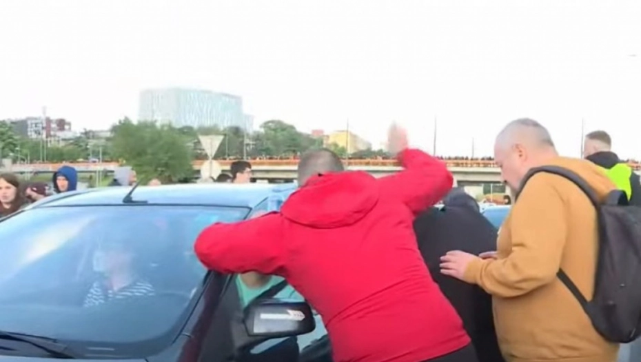 Predvodnik i organizator protesta, Srđan Milivojević, je u jednom trenutku video da je među zaustavljenim automobilima i jedno vozilo slovenačkih registarskih tablica, pa je pohitao da im se izvini što ne mogu da prođu.