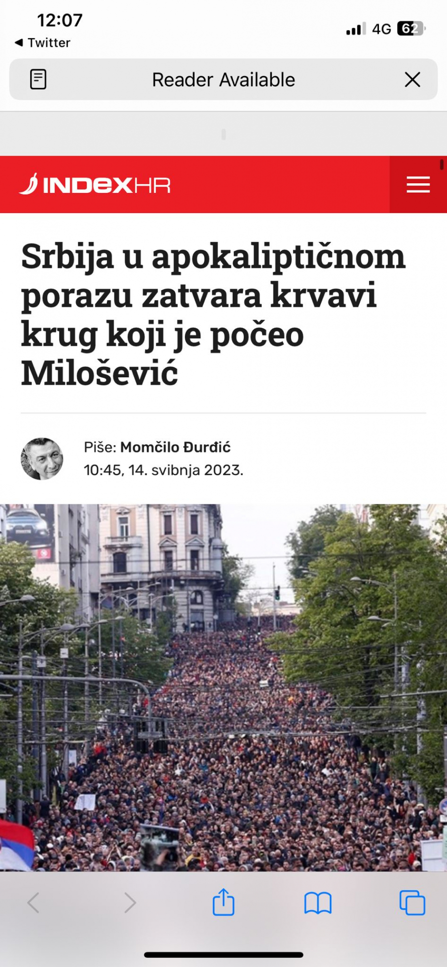 Kako piše Indeks, "Srbija u apokaliptičnom porazu zatvara krvavi krug koji je Milošević počeo", što szuči senzacionalistički, ali nema nikakve veze sa realnim stanjem.