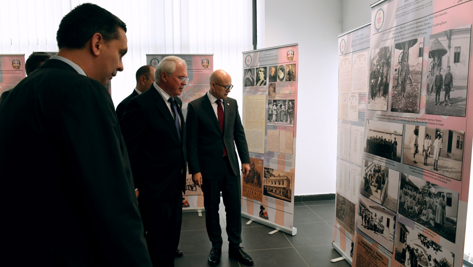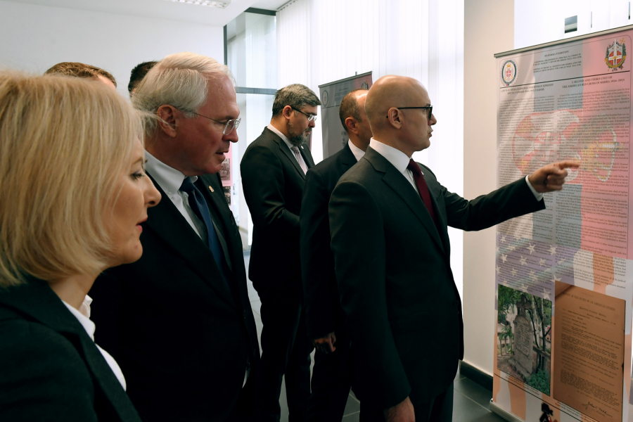 Kroz postavku izložbe vodio ih je direktor Istorijskog arhiva Petar Đurđev, koji je ministru Vučeviću i ambasadoru Hilu govorio o ulozi i značaju američkih sanitetskih misija i srpskog vojnog saniteta u Velikom ratu.