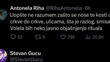 Opoziciona novinarka Antonela Riha, jedan od vatrenih zagovornika nasilnih protesta i blokada u Beogradu, na društvenim mrežama ismeva današnju litiju.