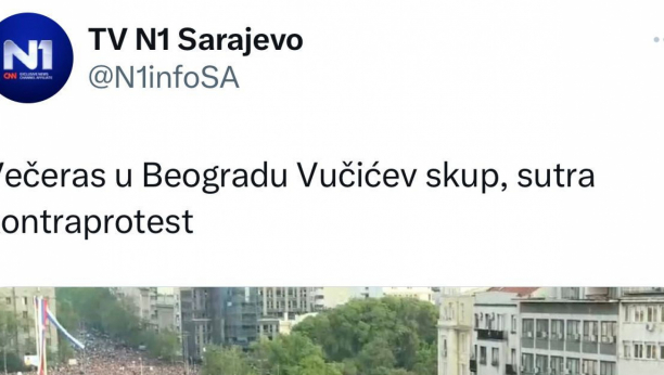 "Večeras je u Beogradu Vučićev skup, a opozicija sutra organizuje kontraprotest" objavio je N1.