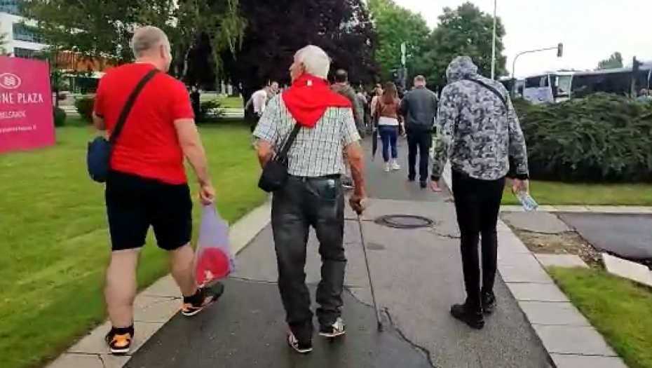 Čovek se i pored operisana oba kuka, uz pomoć štapa, odvažio da peške pređe poslednja tri kilometra peške - od Sava centra do Narodne skupštine.