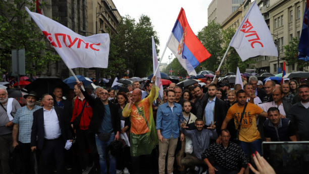 Okupljanje PUPS- a Beograd bilo je na platou ispred crkve Svetog Marka, posebno je bio upečatljiv i izuzetno emotivan susret sa pristiglim članovima sa Kosova i Metohije.