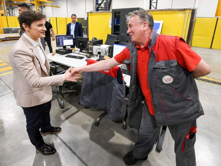 Kompanija „Vaker Najson” otvorila je danas fabriku u Kragujevcu u prisustvu premijerke Ane Brnabić, koja je istakla da je u prvom kvartalu ove godine nivo stranih direktnih investicija u Srbiji iznosio 783,9 miliona evra, što je za 39,6 odsto više nego u istom periodu prethodne godine koja je bila rekordna