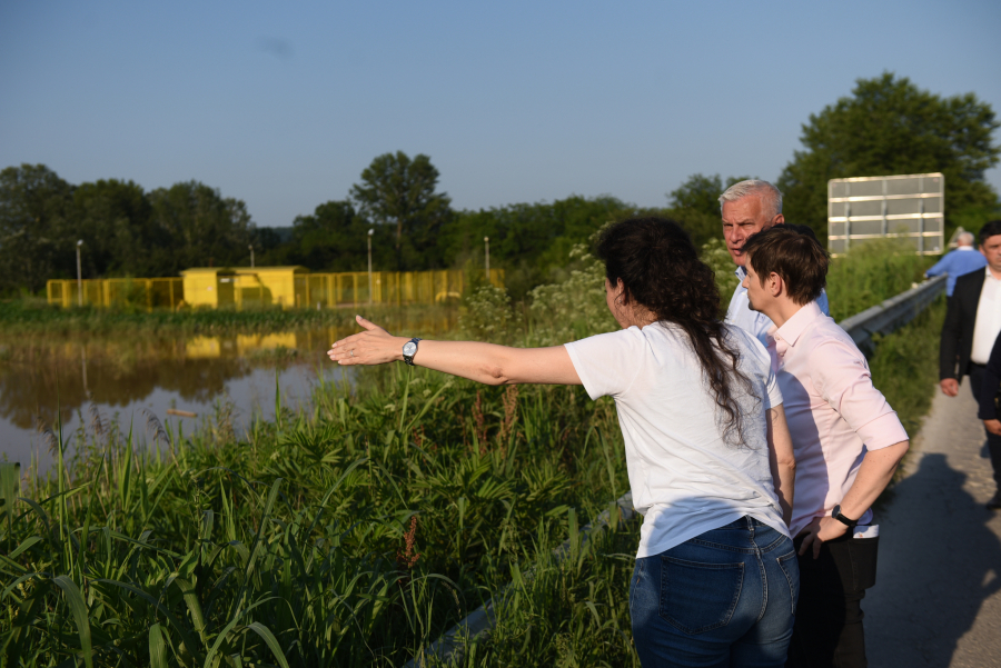Premijerka je potom, zajedno sa ministarkom poljoprivrede Jelenom Tanasković i direktorom Srbija voda Goranom Puzovićem, obišla područja na opštini Ćićevac koja su bila poplavljena.
