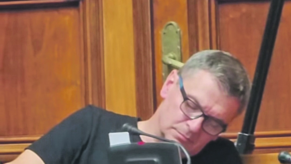 Ponovo se Ćuta uspavao na sednici. Toliko mu je interesantno da je morao da odspava, a možda je i alkohol uradio svoje.