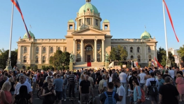 19.50 - Demonstranti idu najpre ka zgradi RTS, a onda ka policijskoj stanici u bivšoj ulici 29. novembra, sada Despota Stefana.