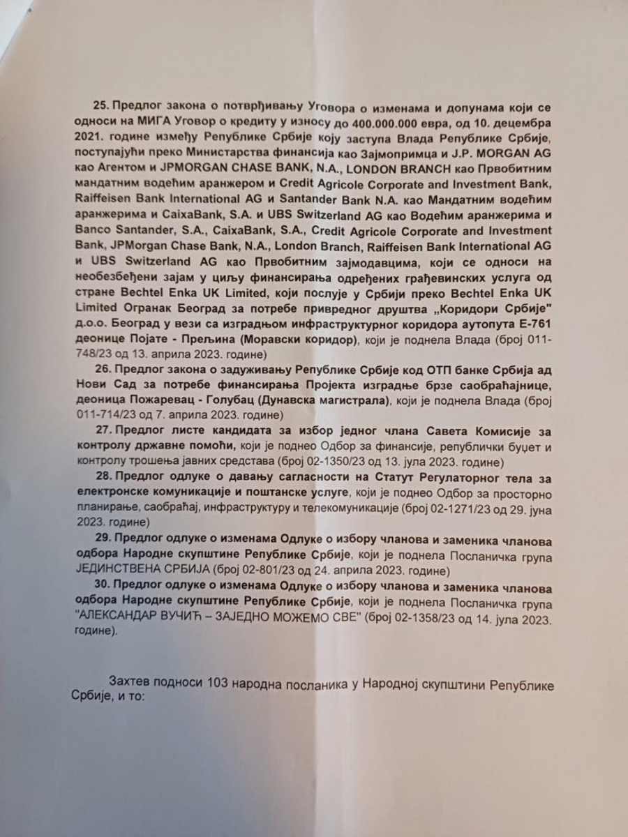 NA DNEVNOM REDU 30 TAČAKA Sazvano zasedanje Narodne skupštine za 19. jul