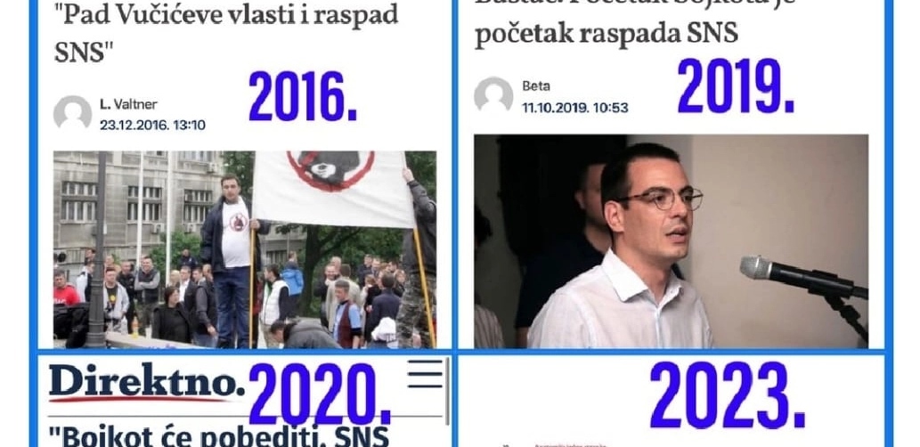 Pad vlasti Aleksandra Vučića najavljen je još 2016. godine, pa zatim 2019. i 2020. godine, kada je opozicija bojkotovala izbore.