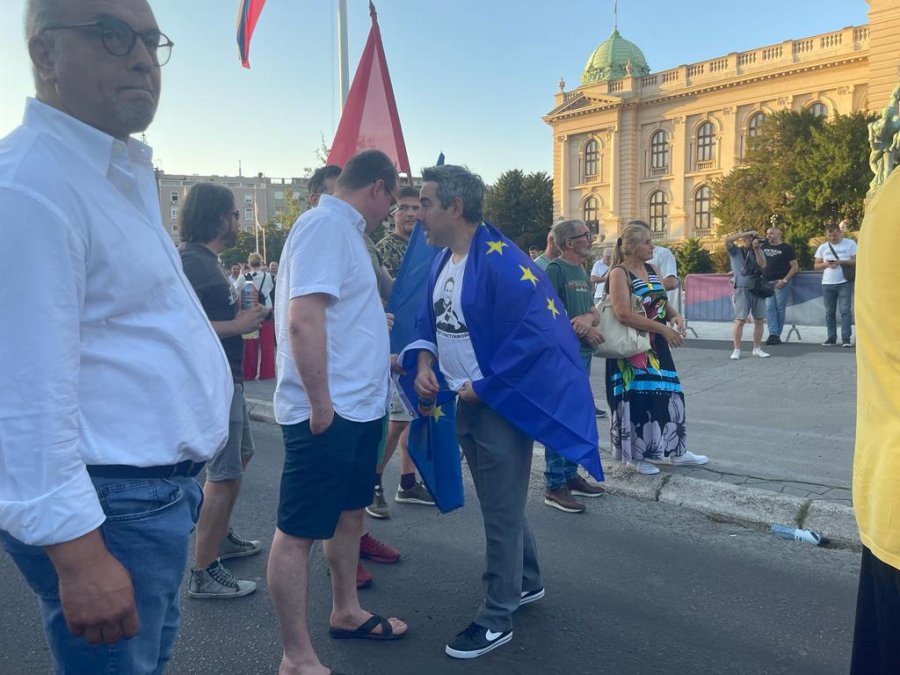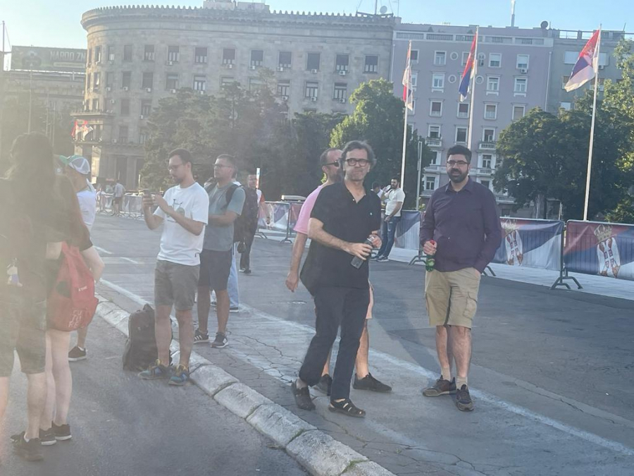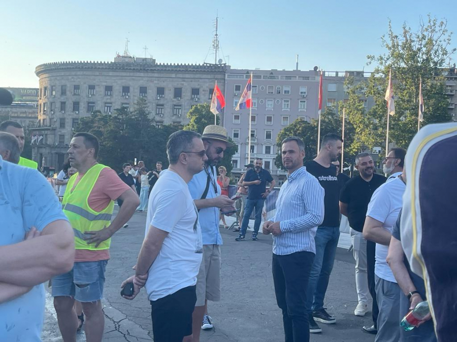 19:10 - Na politički protest pristižu pripadnici dela opozicije koji stoje iza protesta - Radomir Lazović, Aleksandar Jovanović Ćuta, Marinika Tepić, Biljana Đorđević, Miroslav Aleksić, Dobrica Veselinović, Đorđe Pavićević, i Srđan Milivojević. Tu su i bivši predsednik Srbije Boris Tadić, ruski aktivista Petar Nikitin, kao i glumac Branislav Lečić.
