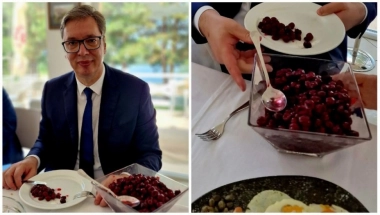 Vučiću je na Oblačinskom jezeru na doručku sa Žiofreom poslužen doručak ukrašen popularnim višnjama.