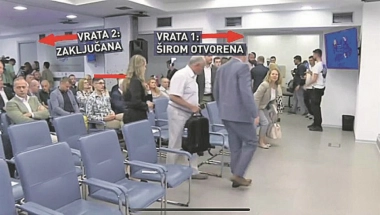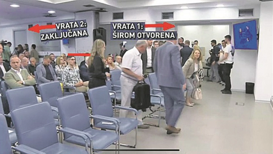 - Jedna vrata i to velika, bila su širom otvorena. Videćete i na slici, ta prostorija sa širom otvorenim vratima je prostorija u kojoj su navodno bili zaključani novinari. I svi su na kraju izlazili na ista vrata. Ništa, ama baš ništa sporno ili neuobičajeno nije se dogodilo - kaže naš sagovornik.