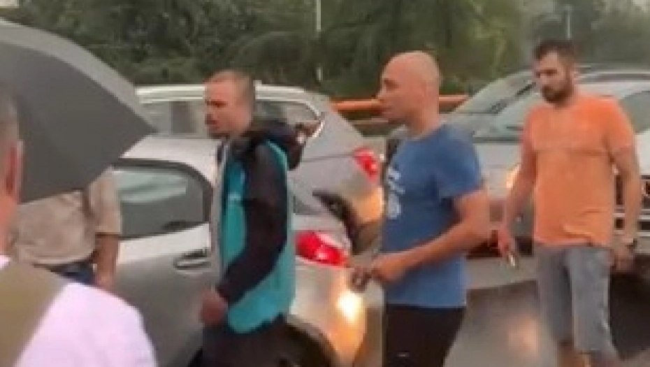Vidno revoltirani, vozači su napustili svoja vozila po kiši i ušli u svađu sa oko 20 učesnika protesta koji su stajali na mostu, onemogućavajući prolaz svima.
