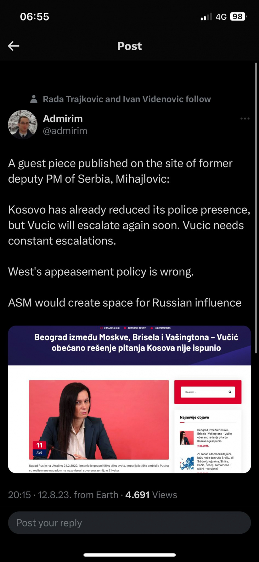 Ne treba dodatno objašnjavati zašto su ovaj tekst zdušno podržali svi Kurtijvci u Prištini.