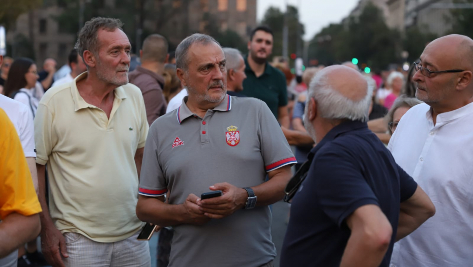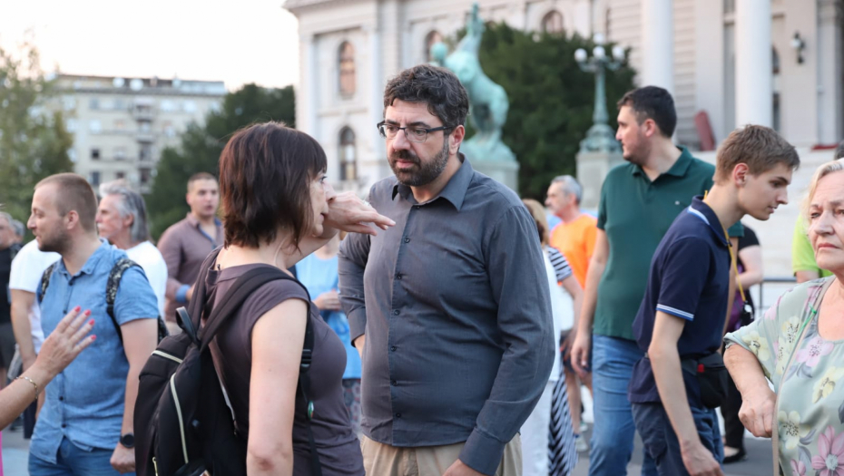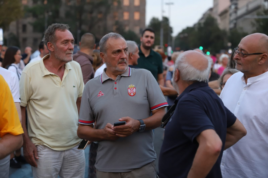 19.13 - Na protest opozicije stigao je Dobrica Veselinović iz Ne davimo Beograd.