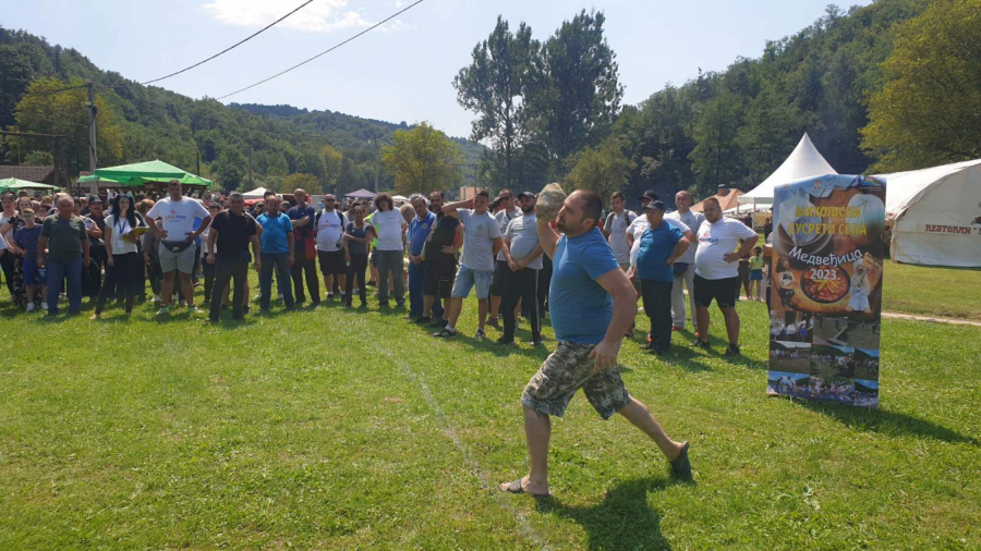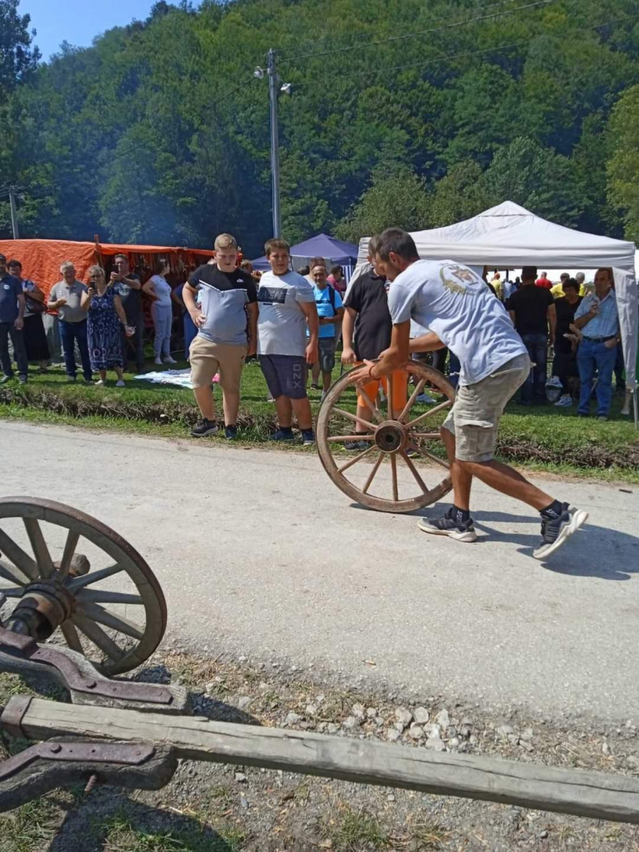 Tik pored gastronomskih đakonija odvijali su se megdani u narodnom višeboju koji iziskuje naročitu snagu i izdržljivost – bacanje kamena s ramena, nadvlačenje na brvnu, penjanje uz konpac, nadvlačenje konopca i trčanje u džaku.