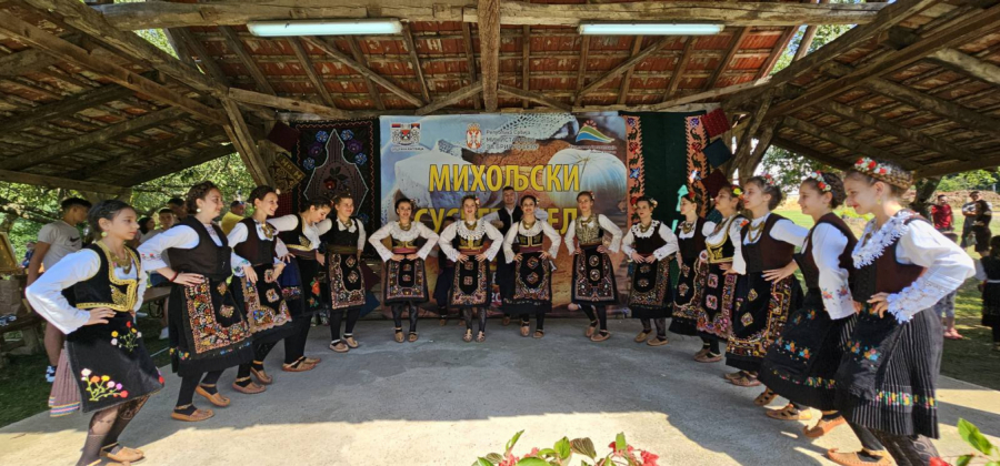 Prošle nedelje Miholjske susrete priredio je i Gadžin Han u dva svoja sela – Gornjem i Donjem Dušniku. Tu su seljani odmeravali snage u gađanju lukom i strelom, obaranju s debla, penjanju uz stablo, a jedna od zanimljivih disciplina bila je gađanje sekirom u metu.