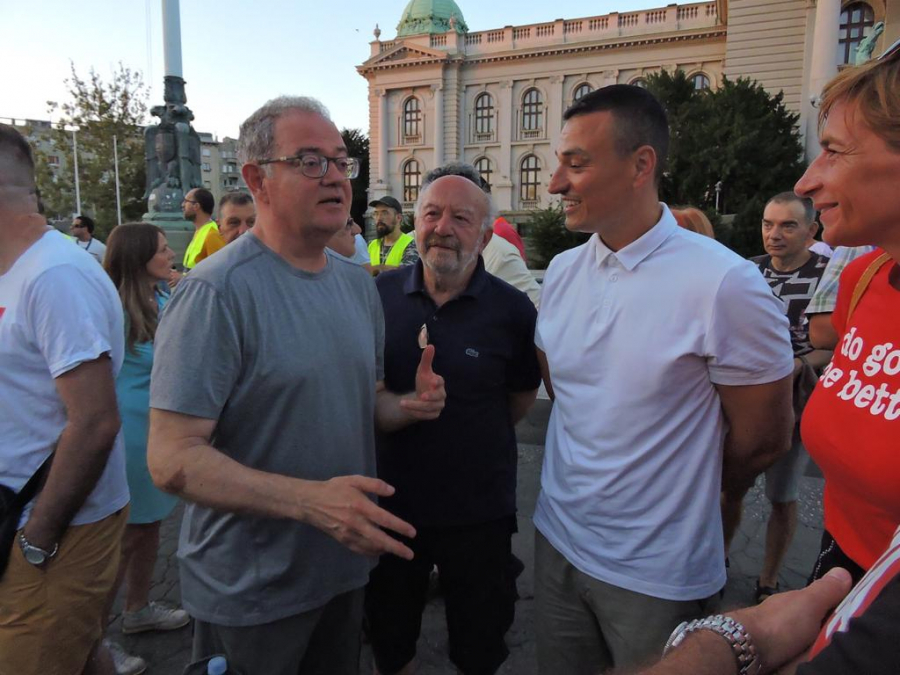 19:27 - Ispred Narodne skupštine došli su Zoran Lutovac, Aleksandar Jovanović zvani Ćuta, Zdravko Ponoš, Vladeta Janković, Dragan Đilas, Marinika Tepić, a primećen je i politički aktivista Petar Nikitin.