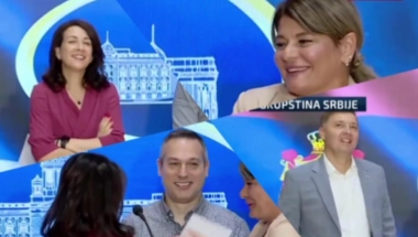 Dok voditeljka N1 najavljuje konferenciju za novinare opozicije koja organizuje tzv. Proteste protiv nasilja, a čiji su povod kobajagi bila masovna ubistva u Ribnikaru i Mladenovcu, uključuje se kamera N1 i snima iste te organizatore protesta kako se smeju!