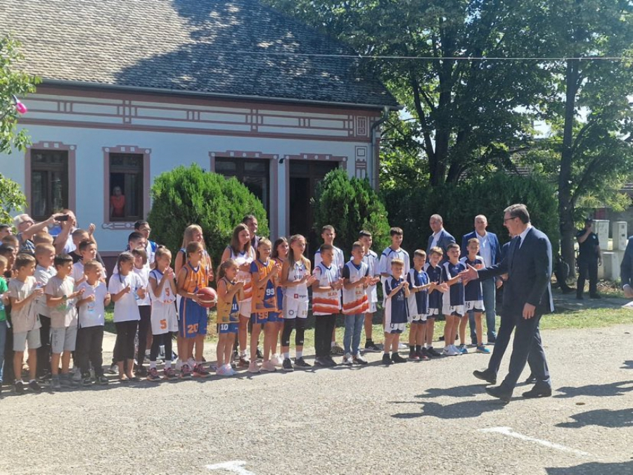 Predsednik je stigao u Lovćenac, poželeo je deci srećan početak školske godine.
