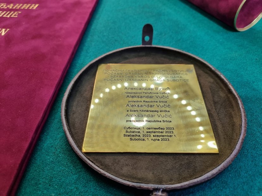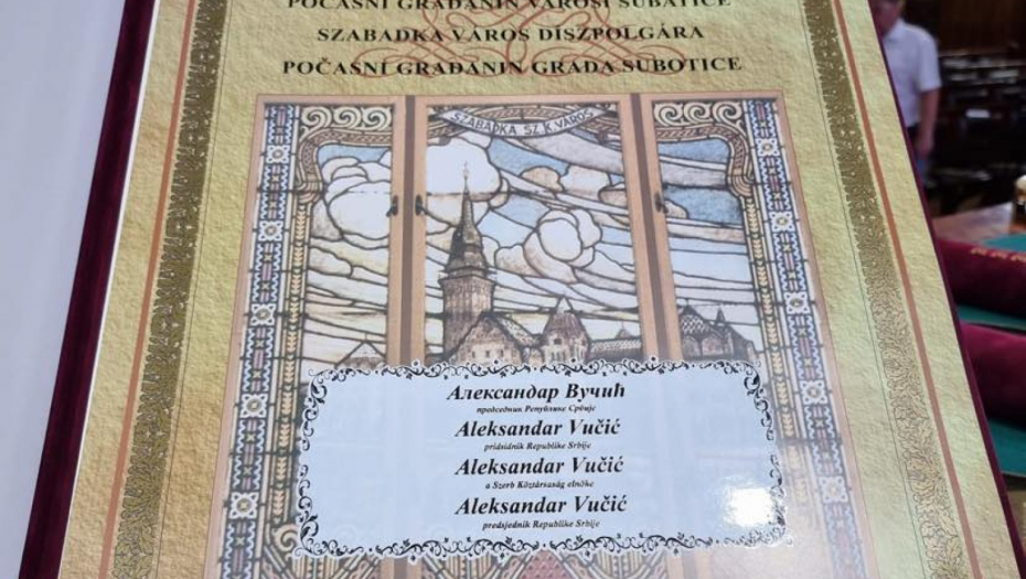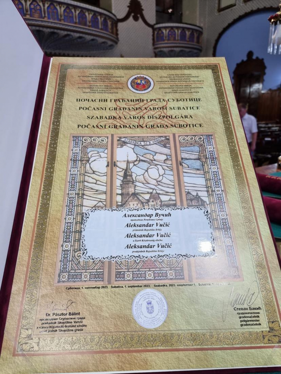 Vučiću je uručena povelja počastnog građanina Subotice.