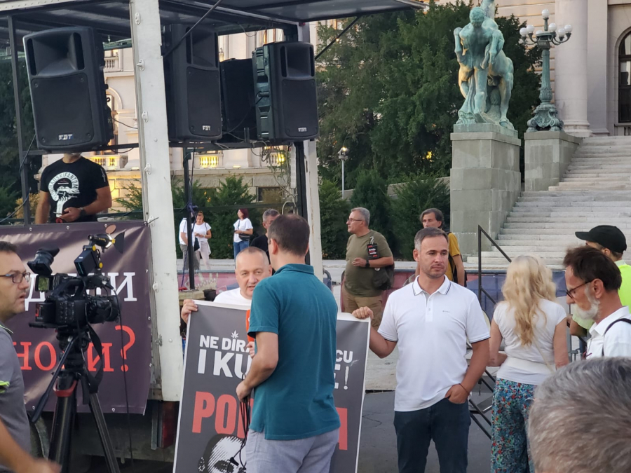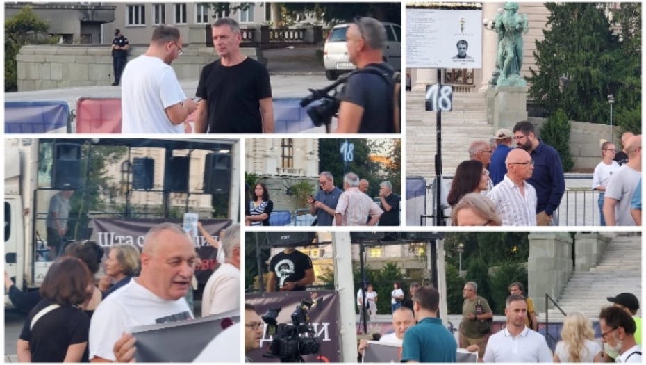 19:01 - Na licu mesta nalaze se predstavnici dela opozicije koja organizuje političke proteste tokom prethodnih 18 nedelje: Aleksandar Jovanović zvani Ćuta, Srđan Milivojević, Dragana Rakić, Radomir Lazović, Miroslav Aleksić i Zoran Lutovac.