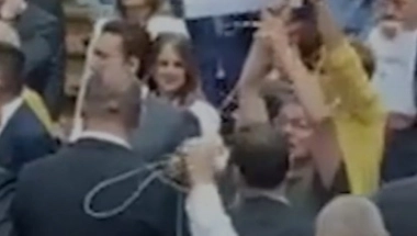 Aleksandar Jovanović zvani Ćuta i Srđan Milivojević doneli su u Skupštinu konopac za vešanje, možda da njime pokažu šta čeka njihove političke protivnike.
