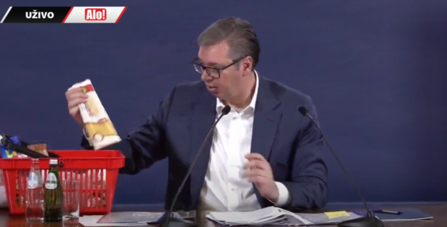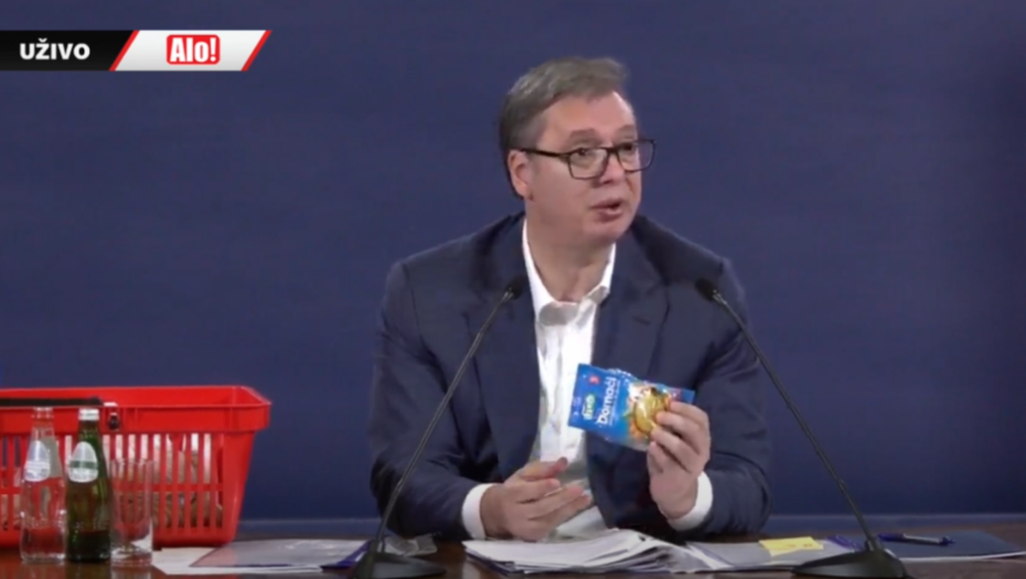 - Ovde su proizvodi koji će biti označeni ovim logom, to je "Bolja cena". Od iduće srede u svim lancima ćete videti ovakve proizvode. Spremili smo i cene u regionu zbog laži mnogih da su naše visoke. Ne postoji niko u regionu ko ima cenu hleba kao našu. Evo pileći parizer cena je 399 dinara, a od srede 259,99 dinara. Reč je o ogromnom pojeftinjenju, samo molim ljude da na rafovima pronađu tamo gde piše "Bolja cena" - kaže predsednik.