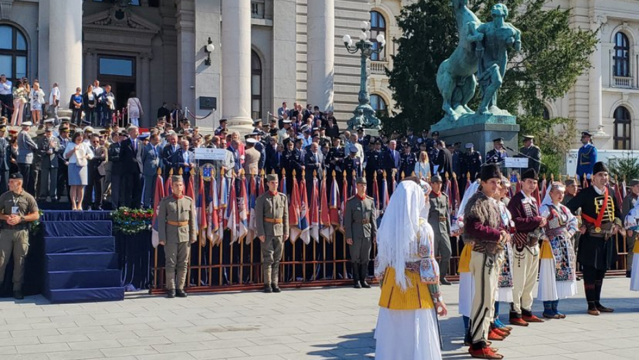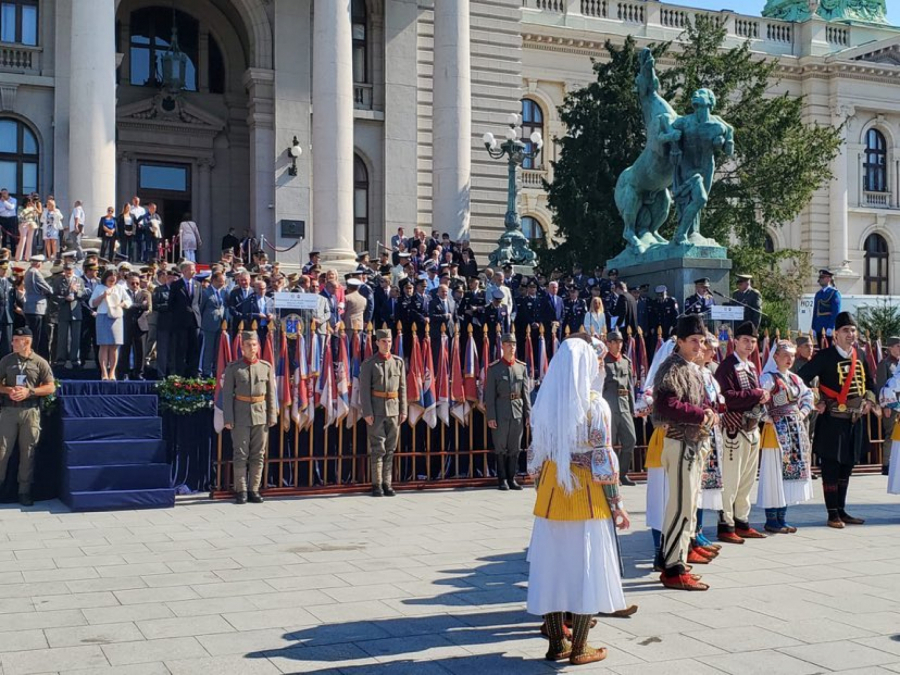 Pre samog početka svečanosti, pukovnik Vojske Srbije Srđan Blagojević predao je raport predsediku Aleksandru Vučiću.