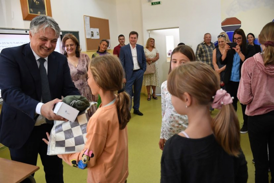 Učenicima je čestitao prvo na početku školske godine i poželeo im da koriste što više tablu i steknu nova znanja.