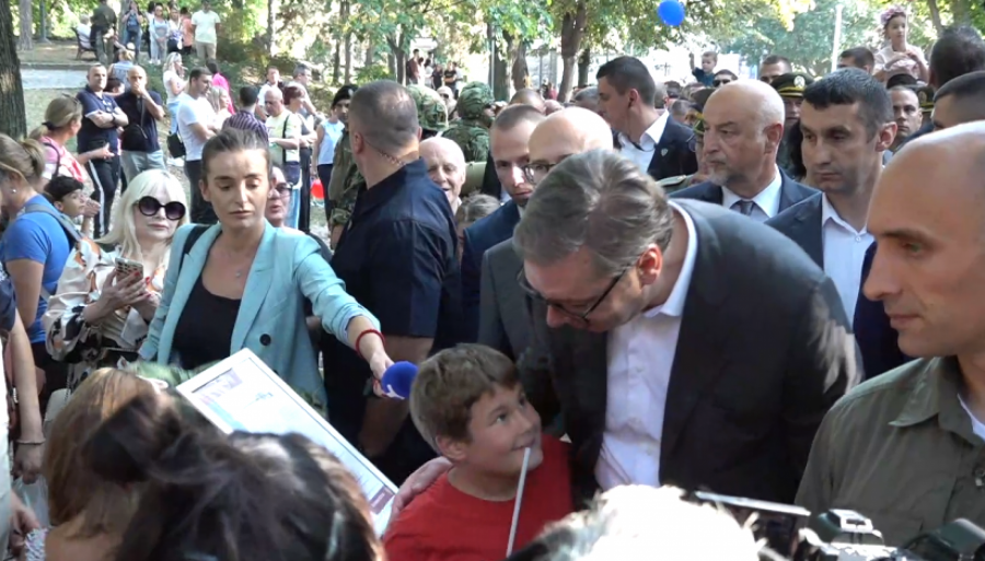 Deca koja su bila okupljena tamo slikala su se sa predsednikom. Jedan dečak iskoristio je priliku da pokaže svoje znanje pred Vučićem i rekao mu da zna broj zemalja koliko ih ima na svetu.