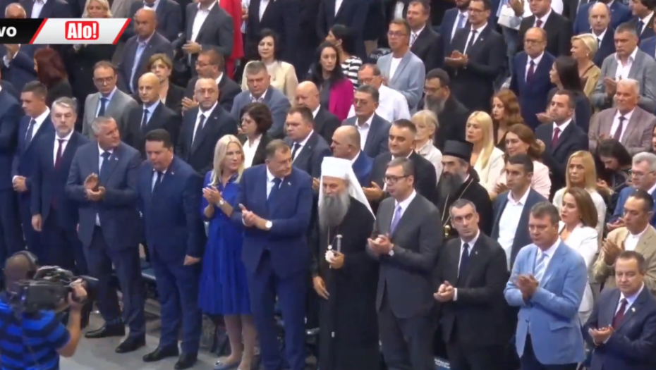 Predsednik Vučić i patrijarh Porfirije su u hali Čajir povodom svečane manifestaciji posvećenoj obeležavanju Dana srpskog jedinstva, slobode i nacionalne zastave.