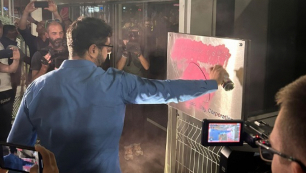 OVO JE NARODNI POSLANIK Radomir Lazović sprejom šara tablu RTS-a (VIDEO)