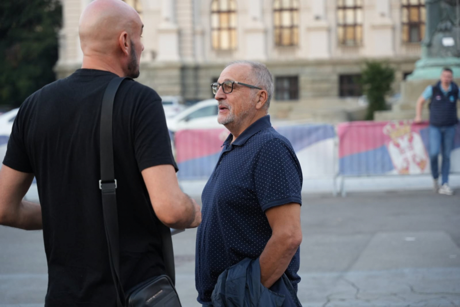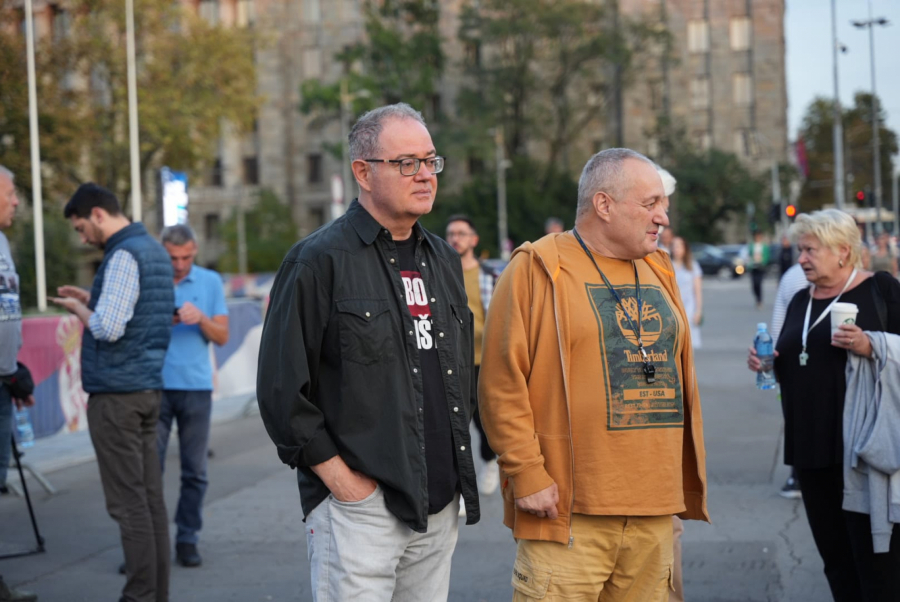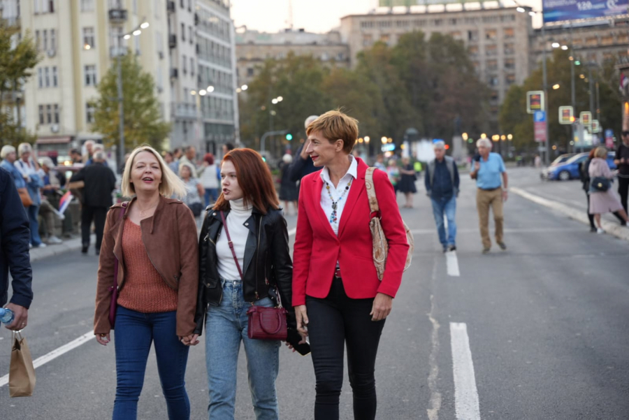 Građani su stigli do Radio-televizije Srbije, gde će se prema planu zadržati oko 10 minuta, a onda nastaviti ka Predsedništvu.