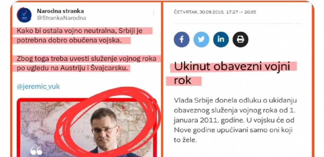 Očigledno je da Jeremić pokušava da privuče pažnju svojim predlozima, ali tražiti uvođenje obaveznog vojnog roka nakon što je isti ukinut tokom njegove vlasti deluje licemerno.