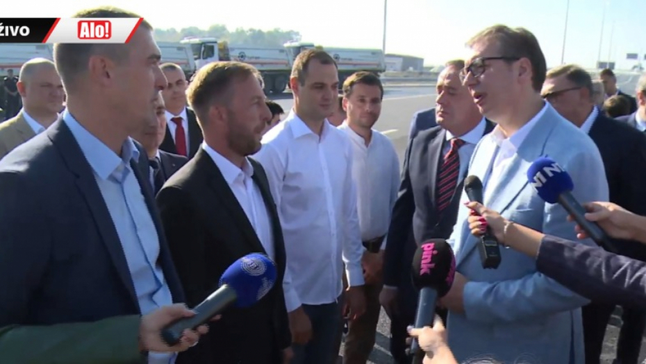 - Nikakav autoput nisu izgradili, nijedan seoski put nije izgrađen. Za vreme mog mandata izrađeno je 500 kilometara autoputa! Sve je kasnilo, bila je i korona. Da li sam srećan što kasne? Sve kasni, vi ste vodili kampanju protiv Beograda na vodi, kada ovi što podržavaju kriminalce i tajkune dođu na vlast. Obezbeđujemo novac, i kao građanini Srbije smo ponosni na to. Vas boli što govorim istinu! Ni Đilas ni Aleksić nisu izgradili ovaj autoput, već su krali pare. Jedan u Beogradu, jedan u Trsteniku. Ja sam kriv za svaki dan kašnjenja, a vi napišite da je Vučić kriv što je izgradio nešto 8 meseci ranije, a oni nisu 80 godina prstom mrdnuli!