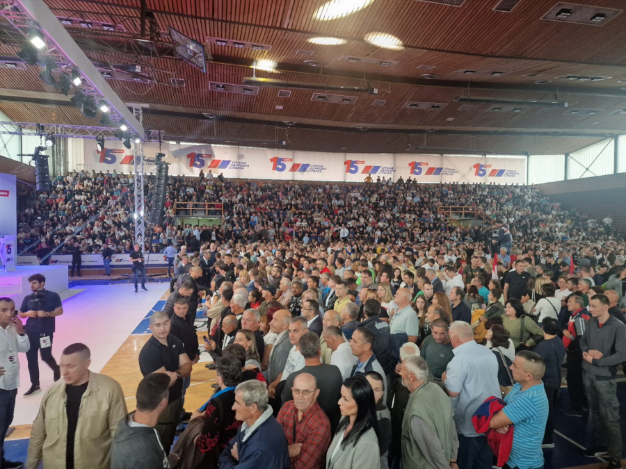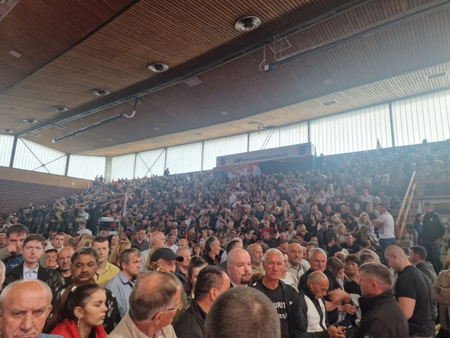Narod čeka predsednika Vučića, nisu svi uspeli da uđu u salu, oseća se veliko ushićenje zbog proslave rođendana.