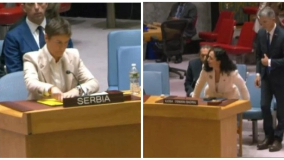 Ispred premijerke Srbije piše "Srbija", a ispred Vjose Osmani samo njeno ime i prezimena, imajući u vidu da tzv. Kosovo nije država i da nije članica UN.