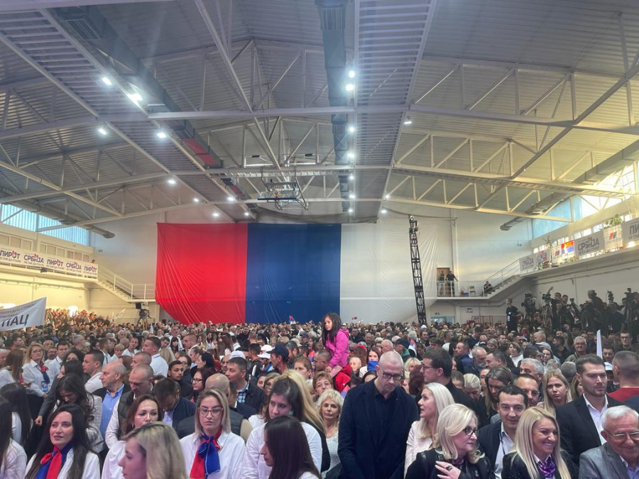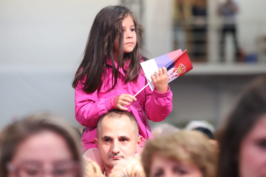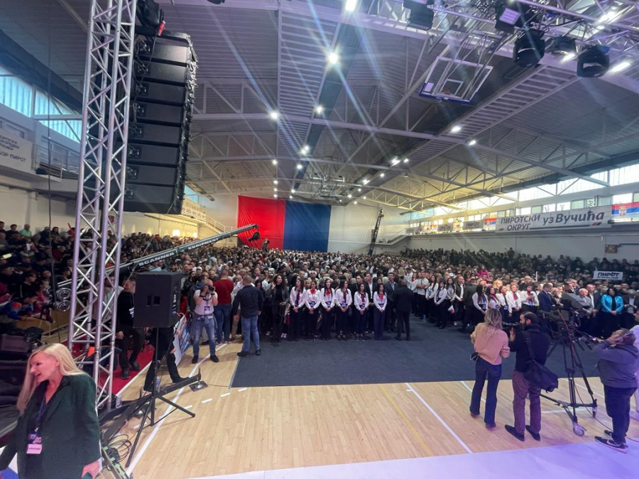Prepuna hala, aplauzi, narod koji je srecan, i to mnogo znaci, i to je dokaz da je Srbija u pravom smeru i da ce nastaviti dalje zajedno sa Vucicem.